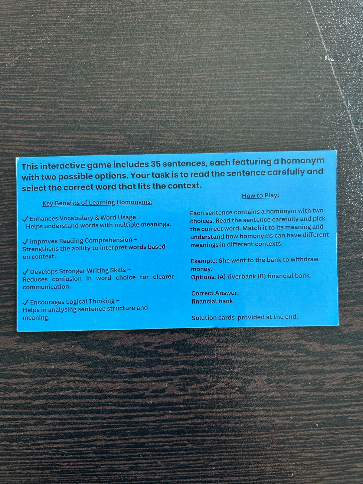 Improving reading comprehension – Understanding homonyms teaches children to look at the whole sentence for clues.